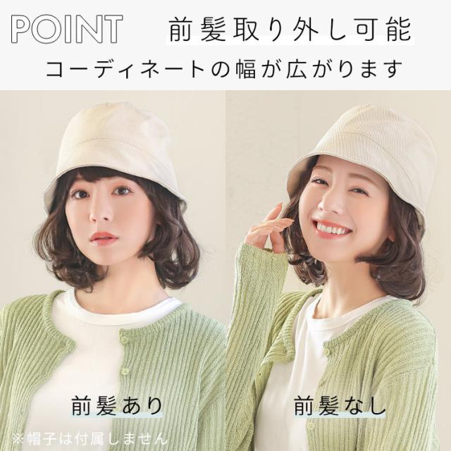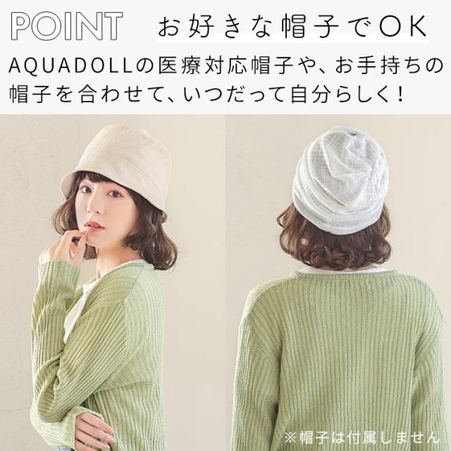 商品名:アクアドール 前髪取り外し式髪付き帽子 ミディアムショートカール人毛MIX [wgn036]