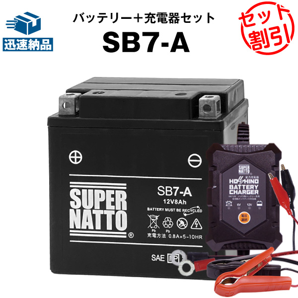 バイクバッテリー充電器+SB7-A セット■バイクバッテリー■YB7-A 12N7-4A GM7Z-4A FB7-A互換■12V/6V切替 星乃充電器・スーパーナットB200、Cosa CL X、DN125、Elyseo、Elystar 125 150