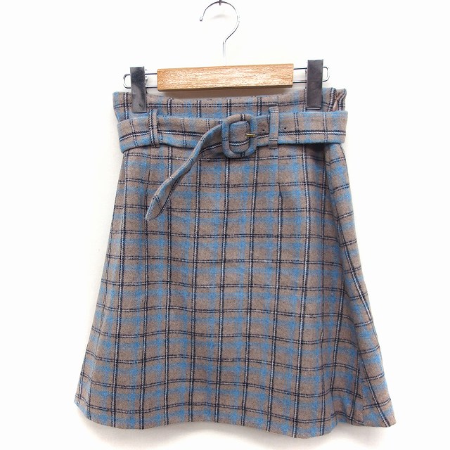 【中古】トランテアン ソン ドゥ モード 31 Sons de mode 台形 スカート ミニ チェック柄 起毛 ベルト 36 グレー /FT
