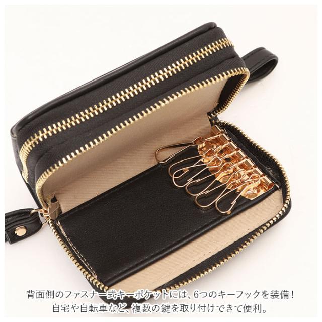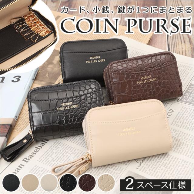キーケース 小銭入れ付き レディース 通販 コインケース キーホルダー おしゃれ 小銭入れ 可愛い 小銭いれ カード 小銭 ダブルファスナー ポケット 小物入れ シンプル 無地 合皮