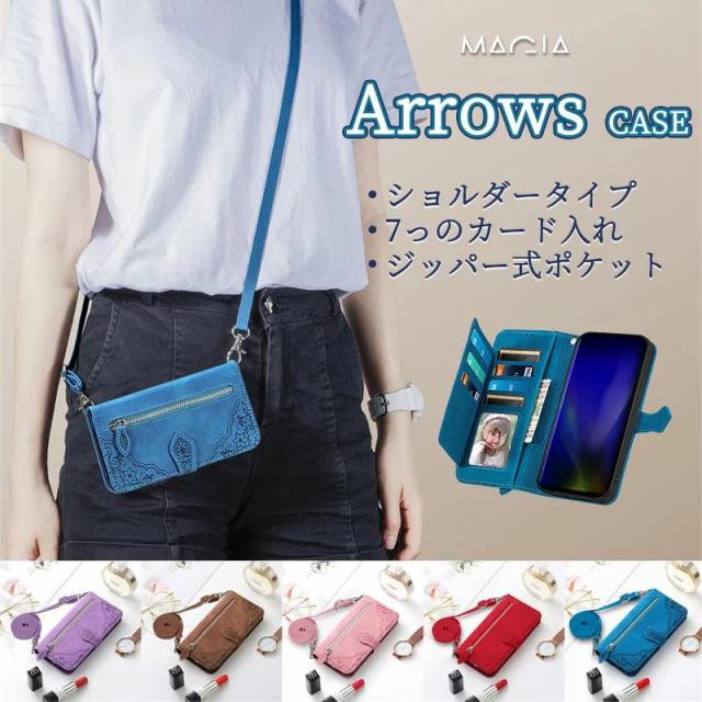 アローズarrows We2 Plus F-51Eケース 手帳型 ショルダー 富士通 Fujitsu arrows we F52B FCG01 携帯ケース ショルダータイプ arrows F-41A F52A 手帳型 スマホケース カバー ファスナー ポケット ショルダーストラップ 花柄 液晶保護 財布型 耐衝撃 女子 おしゃれ かわいい