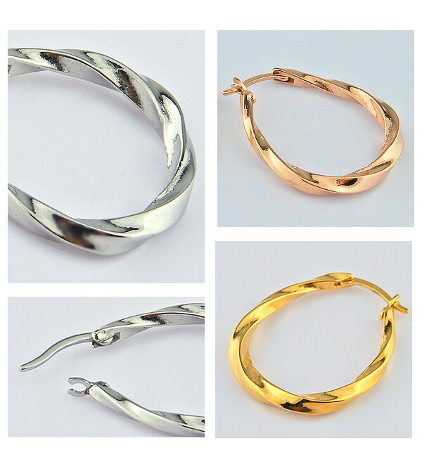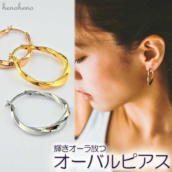ピアス レディース 片耳用 ひねり オーバル サージカルステンレス つけっぱなし 上品 二次会 結婚式 高見え 流行り フープ ツイスト おしゃれ メンズ 男女兼用 金属アレルギー対応 女性 プレゼント 大人 シンプル henoheno ブランド