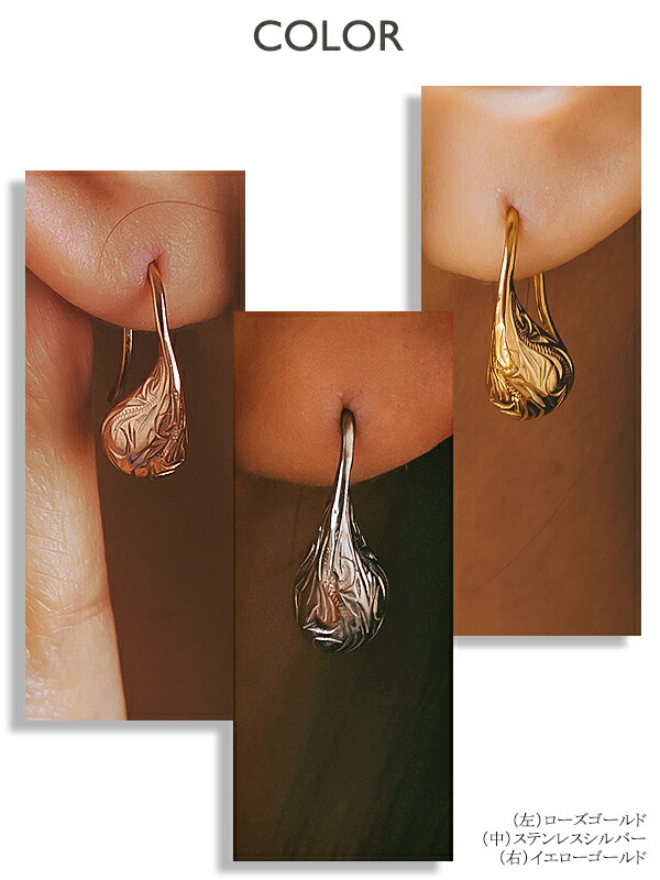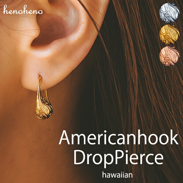 ピアス ハワイアンジュエリー 小ぶり 小さい ティアドロップ シンプル フック レディース 片耳 サージカルステンレス 雫 涙型 ぶらさがり 華やか 二次会 上品 おしゃれ メンズ 男女兼用 金属アレルギー対応 つけっぱなし henoheno ブランド