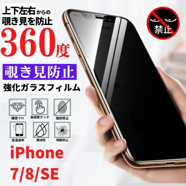 iPhone 7 8 SE 第2世代 第3世代 360度 覗き見防止 強化ガラス フィルム ガラスフィルム 保護フィルム 指紋防止 硬度9H 飛散防止 全面保護 フルカバー 光沢 耐衝撃 ガラス アイフォン のぞき見 iPhone7 iPhone8