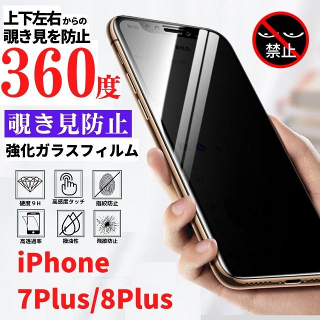 iPhone 7Plus 8Plus 360度 覗き見防止 強化ガラス フィルム ガラスフィルム 保護フィルム 指紋防止 硬度9H 飛散防止 全面保護 フルカバー 光沢 耐衝撃 ガラス アイフォン のぞき見 7 8 Plus 7プラス 8プラス