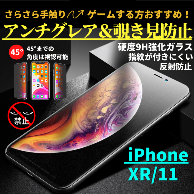 iPhone XR iPhone 11 覗き見防止 アンチグレア 強化ガラス フィルム ガラスフィルム 非光沢 さらさら マット 反射防止 指紋防止 硬度9H 飛散防止 全面保護 フルカバー iphone アイフォン テンアール イレブン