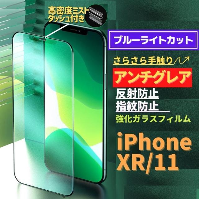 iPhone XR iPhone 11 ブルーライトカット アンチグレア グリーン フィルム 強化ガラス ガラスフィルム 非光沢 さらさら マット 反射防止 指紋防止 硬度9H 飛散防止 全面保護 フルカバー アイフォン11 テンアール イレブン