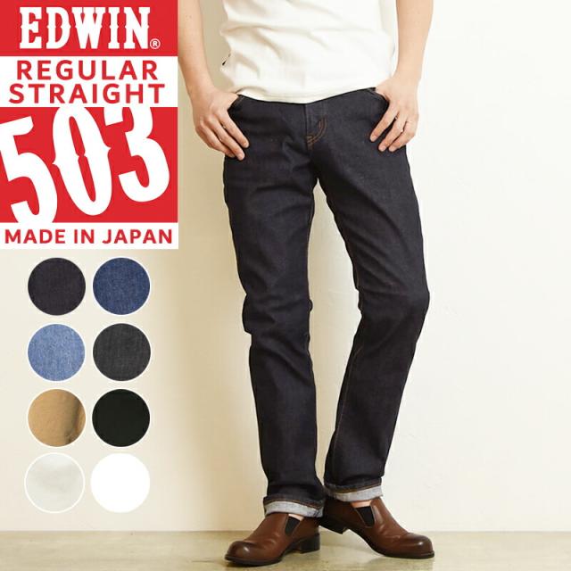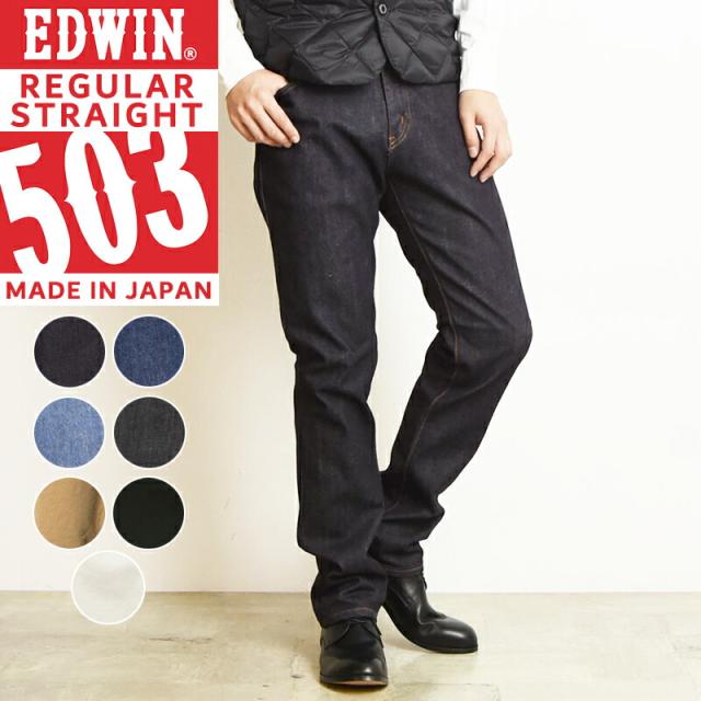 【セール/20%OFF】 裾上げ無料 EDWIN エドウィン NEW503 デニムパンツ ジーンズ レギュラーストレート ふつうのストレート メンズ ブラック ホワイト 定番 ジーパン E50303-100/93/98/101/75/14/18/24