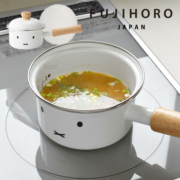 【 富士ホーロー 公認商品 】片手鍋 12cm ミッフィー 小さい 蓋付き 北欧 鍋 ミニソースパン miffy Series(ミッフィーシリーズ) ソースパン 小さめ MFF-12S (0.8L) IH200V ih IH対応 かわいい ミッフィーフェイス 離乳食 スープ ポリ蓋 フタ おしゃれ