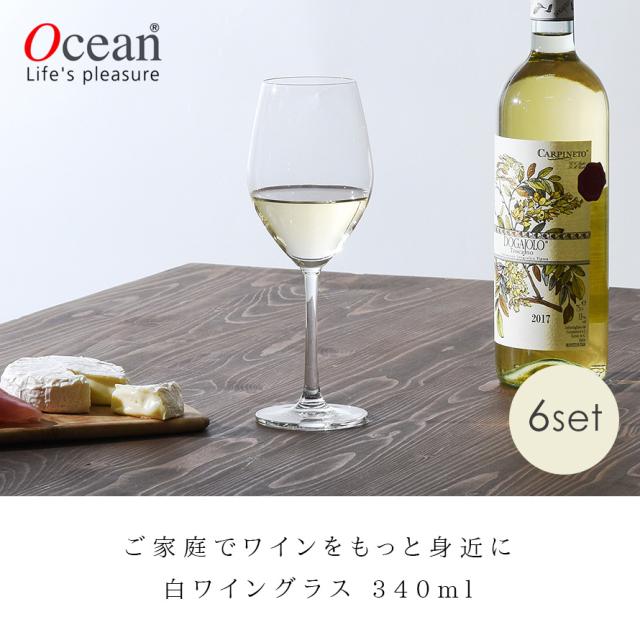 ご家庭でワインをもっと身近に。白ワイングラス 340mlの6個セット。美しさと機能性と品質を兼ね備えたオーシャングラスのサンテグラスシリーズです。