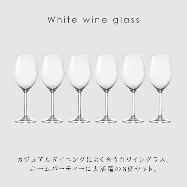 カジュアルダイニングに合う白ワイングラス。ホームパーティーなどに大活躍の6個セット。