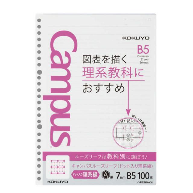 コクヨ [ルーズリーフ] 学習罫 キャンパスルーズリーフ 図表罫 (7mm罫 B5 100枚) ノ-F836AK