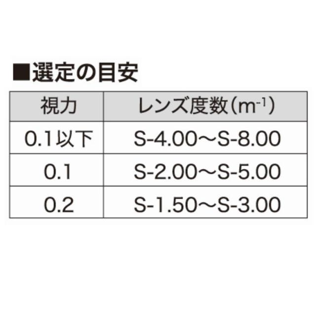 | レンズ度数 | S-2.00 S-3.00 S-4.00 S-5.00 S-6.00 |