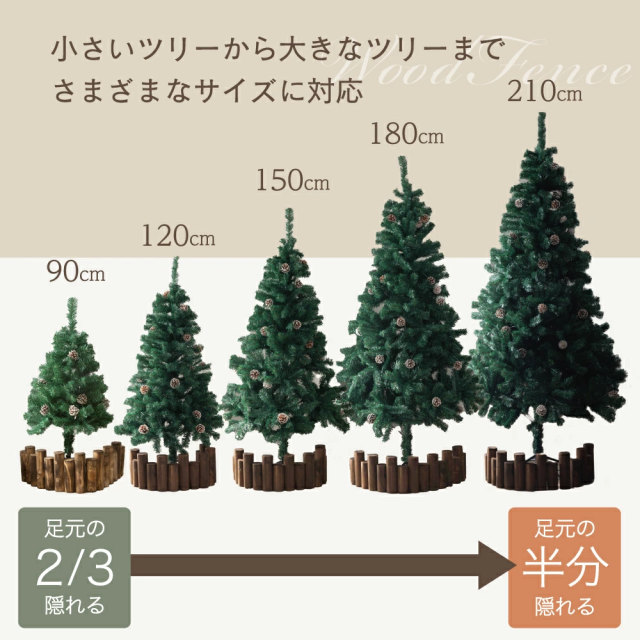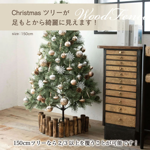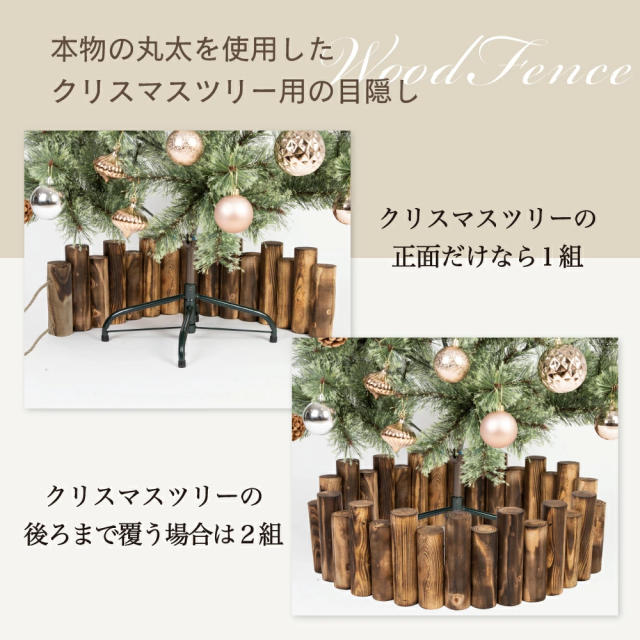| 2 | 本物の丸太で存在感抜群 本物の丸太を使用しているので、足元からクリスマスツリーが綺麗に見えます。 ウッドフェンスひとつで、簡単に北欧風ツリーの雰囲気が味わえます。 |