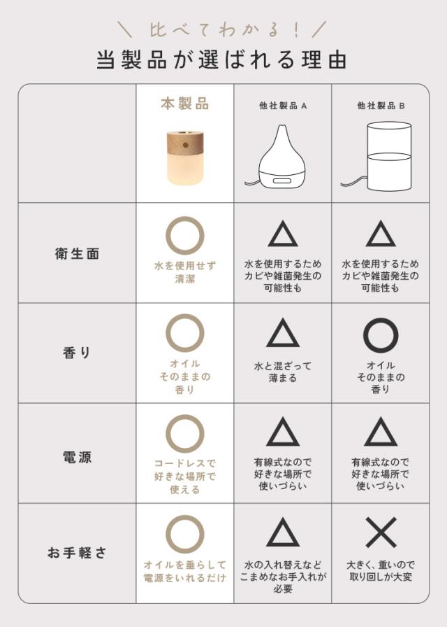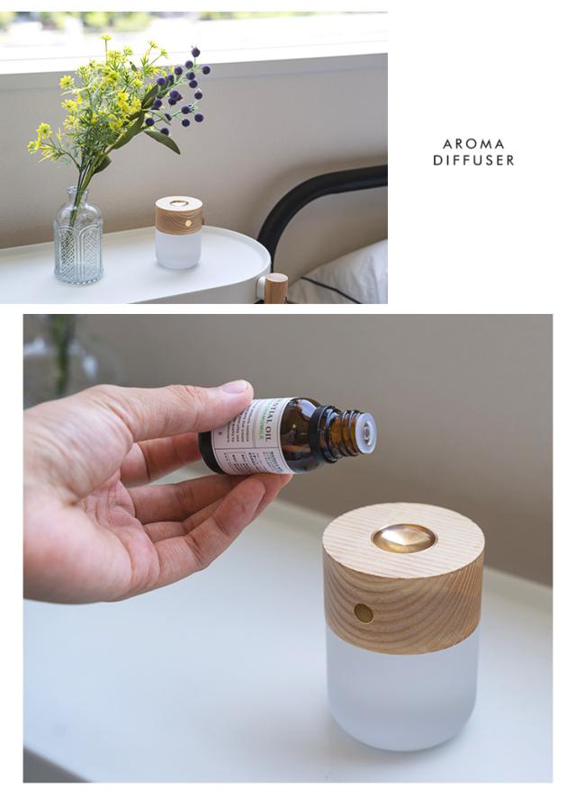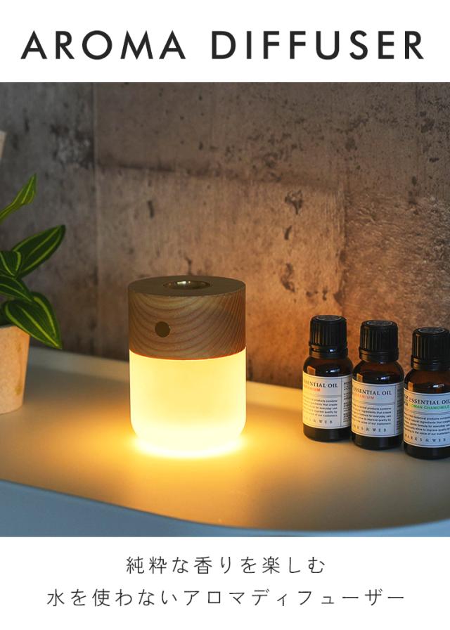 アロマディフューザー 水なし コードレス アロマランプ 充電式 加熱式 加湿器 水を使わない コンパクト 天然木 LEDライト デスクライト タッチセンサー インテリア雑貨