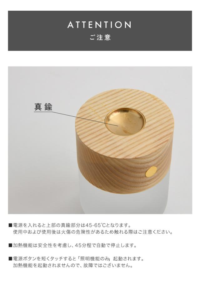 | 水がいらず、コードレスで使用できるアロマディフューザー。 天然木材を使用したヘッドパーツがお洒落なデザイン。 アロマ受け口のボタンには銅を採用しており、デザインのアクセントになっております。 加熱機能がついており、上部の受け皿にアロマオイルを垂らすことで香りをお楽しみ頂けます。 タッチ式のボタンで簡単操作 3段階調光ができるのでシーンに合わせて明るさを調節できます。 場所を取らないコンパクトなサイズ感でリビングから寝室まで様々なシーンでお使い頂けます。 カラー ナチュラル / ブラウン サイズ(約/cm) 高さ9 × 幅6.5 素材 天然木材 / プレキシガラス / 真鍮 重量 約400g セット内容 本体 / USBケーブル(Type-C) / 説明書 機能 LED照明(3段階調光) / 加熱式(気化式)アロマ 光源色 暖白色(2700K-3000K) 加熱温度 45〜65℃ 連続稼働時間 約1.5〜2時間 ※加熱モードは45分で自動OFFとなります 消費電力 1W DCアダプタ電力 5V1A バッテリー内容量 800mAh 注意事項 加熱モードをONにすると、真鍮部分は45〜65℃となります。 使用中、および使用後は火傷の危険性があるためご注意ください。 生産国 Made in China 【関連キーワード】 アロマディフューザー 水なし コードレス アロマランプ 充電式 加熱式 加湿器 水を使わない コンパクト 天然木 LEDライト デスクライト タッチセンサー 和風 北欧 インテリア雑貨 リラックス 精油 エッセンシャルオイル おしゃれ アロマディフューザー アロマ ディフューザー コードレス 水なし アロマランプ 充電式 加熱式 加湿器 水を使わない コンパクト 天然木 LEDライト デスクライト タッチセンサー インテリア雑貨 関節照明 ナイトライト 送料無料 |