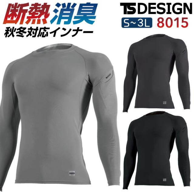 TS DESIGN 防寒長袖インナー 秋冬 防寒着 防寒 インナー ストレッチ 作業着 インナーシャツ アンダーウェア スポーツ 長袖 ネコポス tw-8015