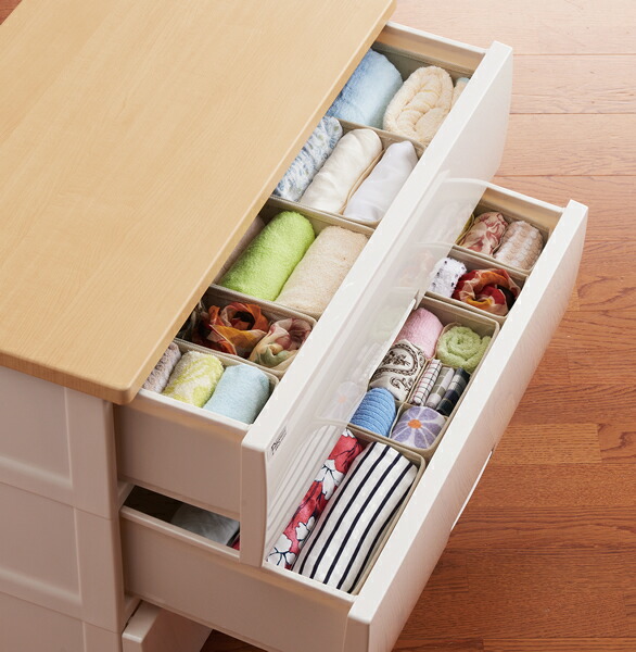 ちらかりがちな靴下やハンカチ・下着など、小物の収納に。