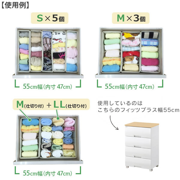 引き出し内を仕切って衣類や小物を美しく収納できる、引き出し用仕切りケース。