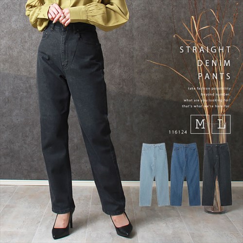 送料無料 デニム ストレート パンツ レディース ハイウエスト コットン フロントボタン ジップ ナチュラル 抜け感 M/Lサイズ 春 夏 秋 冬 オフィスカジュアル かわいい お出かけ デート 楽ちん ゆったり Ladies 20代 30代 40代