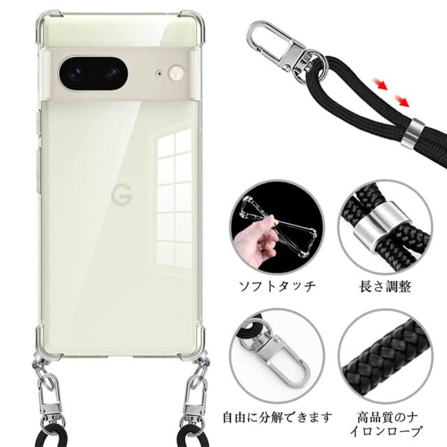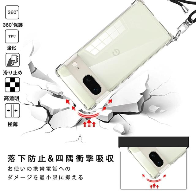 Pixel7 ケース Pixel7 Pro ケース ショルダー ストラップ TPU 全面クリア 耐衝撃 肩掛け 背面透明 グーグル ピクセル7 カバー 指紋防止 エアクッション マイクロドット加工 グーグル 2022 新型 スマートフォン スマホケース