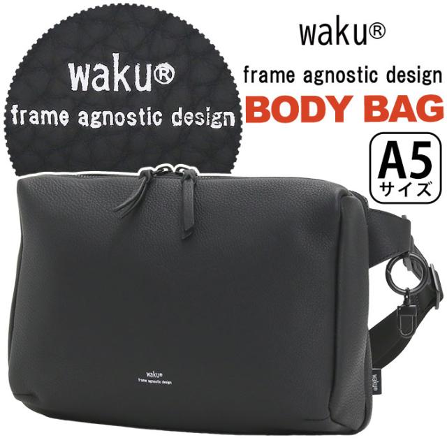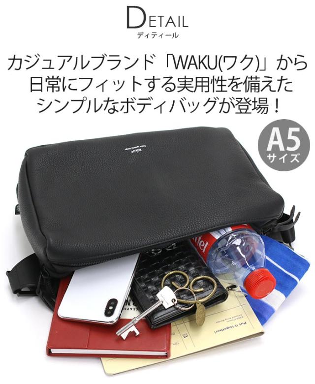 ワク ボディバッグ waku レディース メンズ ショルダーバッグ ワンショルダー バッグ かばん 鞄 斜め掛け マザーズバッグ ママバッグ 女性 男性 ユニセックス A5 おしゃれ シンプル カジュアル きれいめ 黒 ブラック 牛革 レザー ソフト 上品 軽量 WK-0029