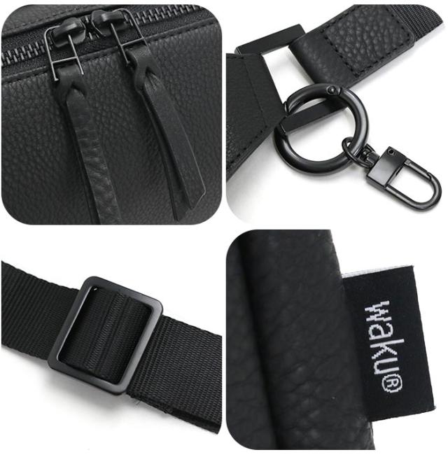 | この商品について | 日常にフィットする機能性と実用性を兼ね備えたジェンダーレスなカジュアルブランド「waku(ワク)」からボディバッグが登場! レザーをはじめ金具やファスナーもオールブラックで統一されているブラックカラーのみのシリーズ展開のバッグです。 本体素材は柔らかい質感の牛革を使用しており、シボ感のある牛革は使用するたびに馴染んで柔らかくなっていきます。 開口部はダブルファスナータイプで開閉がしやすく、荷物の出し入れ楽々◎ メインルームはA5サイズ対応で、長財布や500mlのペットボトル等、必要な物はしっかり収納してくれるサイズ感。 内側にはオープンポケットとファスナーポケットが搭載されており、小物等の収納にも困りません。 ショルダーベルトは体に合わせて長さ調節も可能です。 また取り外し可能なキーリングも付属されているので、鍵等の取り付けにも便利◎ 性別問わず持ちやすいデザイン&サイズ感。普段使いからアウトドアやフェス、旅行のサブバッグまで幅広く活躍してくれるショルダーバッグです! |