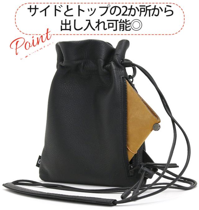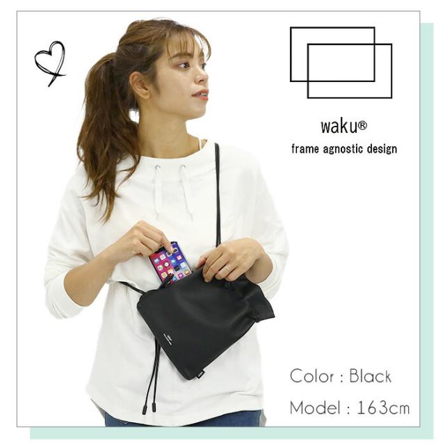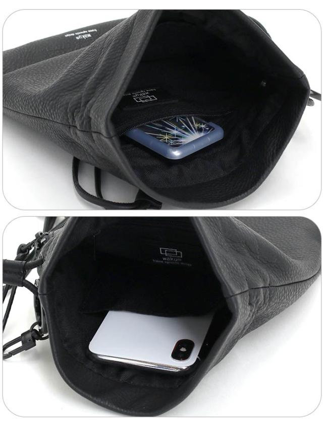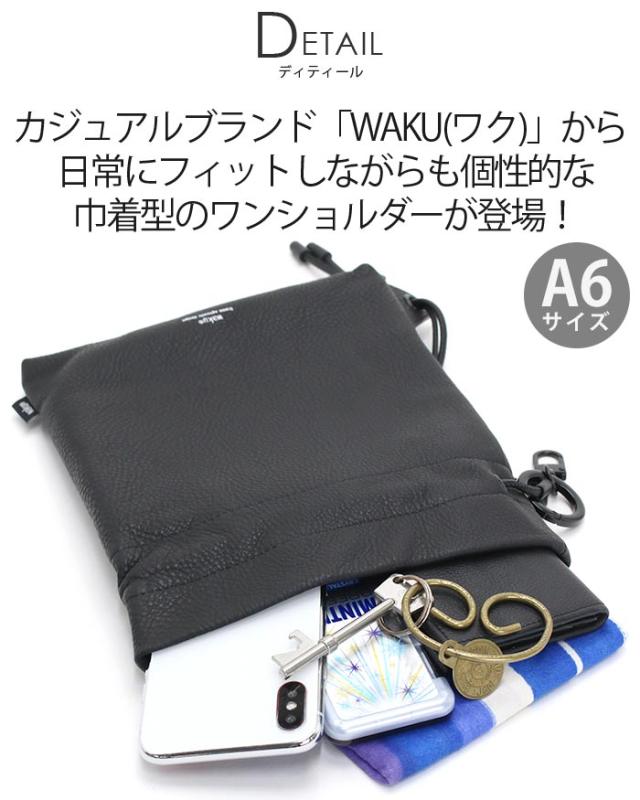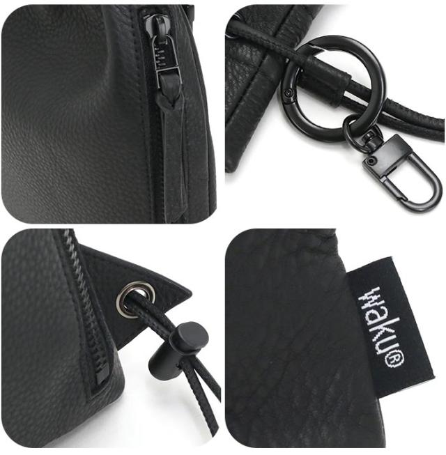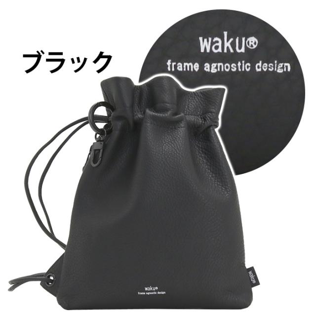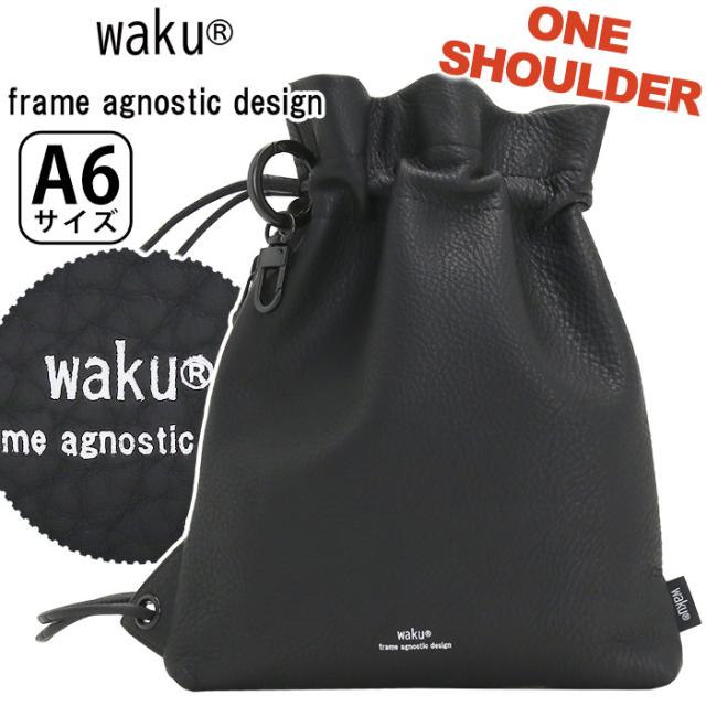 ワク ショルダーバッグ waku レディース メンズ ワンショルダー ミニショルダー 巾着 ポーチ ショルダー バッグ かばん 鞄 斜め掛け ママバッグ 女性 男性 A6 コンパクト おしゃれ シンプル カジュアル きれいめ ブラック 牛革 レザー ソフト 上品 軽量 WK-0030