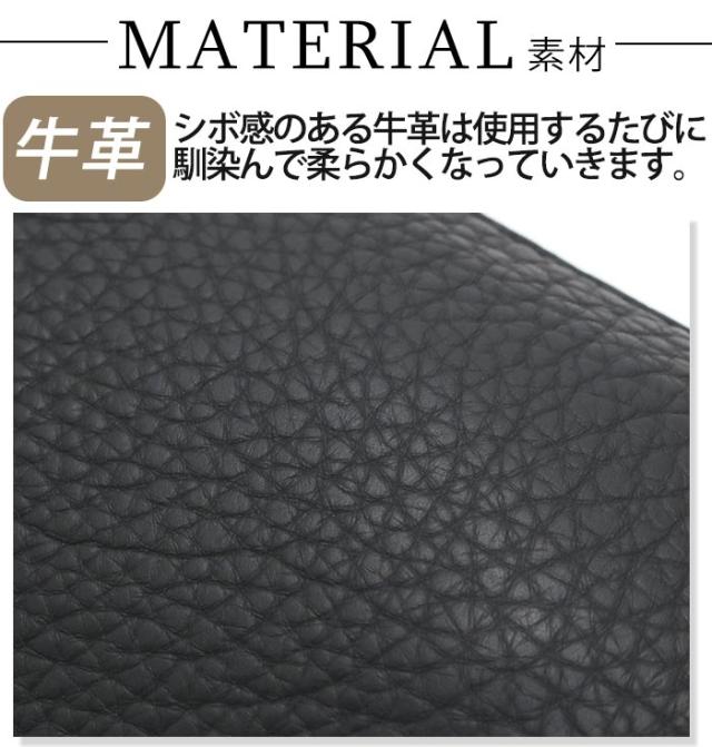 本体素材は柔らかい質感の牛革を使用しており、シボ感のある牛革は使用するたびに馴染んで柔らかくなっていきます。