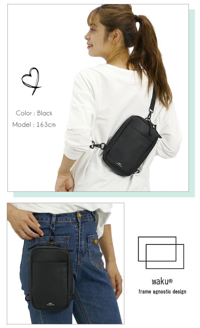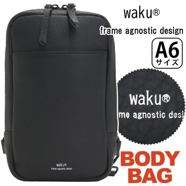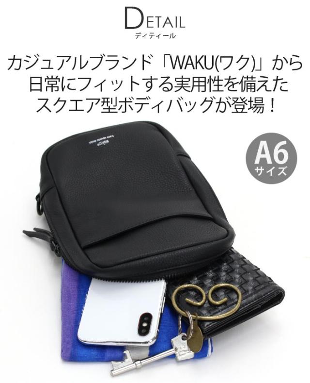 ワク ボディバッグ waku レディース メンズ ショルダーバッグ ワンショルダー バッグ かばん 鞄 斜め掛け マザーズバッグ ママバッグ 女性 男性 ユニセックス A6 コンパクト おしゃれ シンプル カジュアル きれいめ ブラック 黒 牛革 レザー ソフト 上品 軽量 WK-0032