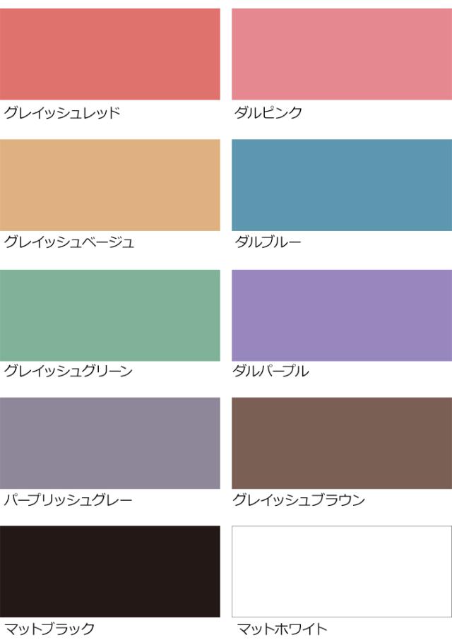 ■カラー:グレイッシュレッド、ダルピンク、グレイッシュベージュ、ダルブルー、グレイッシュグリーン、ダルパープル、パープリッシュグレー、グレイッシュブラウン、マットブラック、マットホワイト