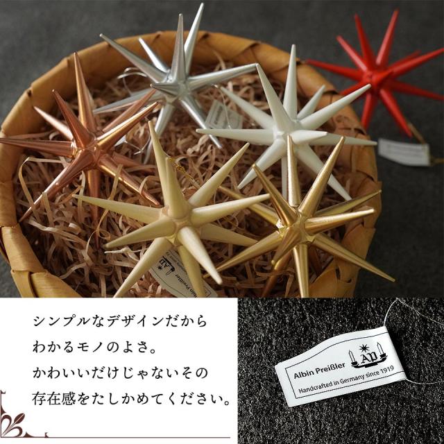 ALBIN,ALBIN PREISSLER,Albin Preissler,アルビン,アルビンプライスラー,アルビン・プライスラー,プライスラー,ドイツ,ヨーロッパ,ザイフェン,エルツ,工房,手工芸,クリスマスツリー,クリスマスイルミネーション,クリスマス雑貨,デコレーション,クリスマス,クリスマスツリー,ツリー飾り,飾り付け,オーナメントセット,christmas,christmastree,クリスマスオーナメント,ツリーオーナメント,オーナメント,木製,ハンドメイド,イガイガ,星,ダビデ,ベツレヘム,ベツレヘムの星,クリスマスの星,立体星,ゴールド,金,シルバー,銀,コッパー,銅,オルゴール,クラシック,ナチュラル,リュージュ社,正規輸入品,北欧,正規品,シンプル,本物,おしゃれ,人気
