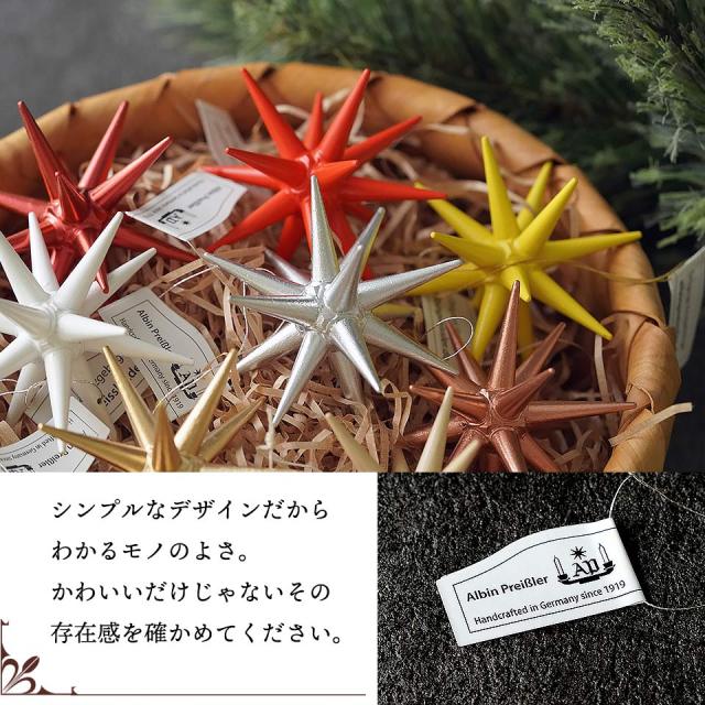 ALBIN,ALBIN PREISSLER,Albin Preissler,アルビン,アルビンプライスラー,アルビン・プライスラー,プライスラー,ドイツ,ヨーロッパ,ザイフェン,エルツ,工房,手工芸,クリスマスツリー,クリスマスイルミネーション,クリスマス雑貨,デコレーション,クリスマス,クリスマスツリー,ツリー飾り,飾り付け,オーナメントセット,christmas,christmastree,クリスマスオーナメント,ツリーオーナメント,オーナメント,木製,ハンドメイド,イガイガ,星,ダビデ,ベツレヘム,ベツレヘムの星,クリスマスの星,立体星,ゴールド,金,シルバー,銀,コッパー,銅,オルゴール,クラシック,ナチュラル,リュージュ社,正規輸入品,北欧,正規品,シンプル,本物,おしゃれ,人気