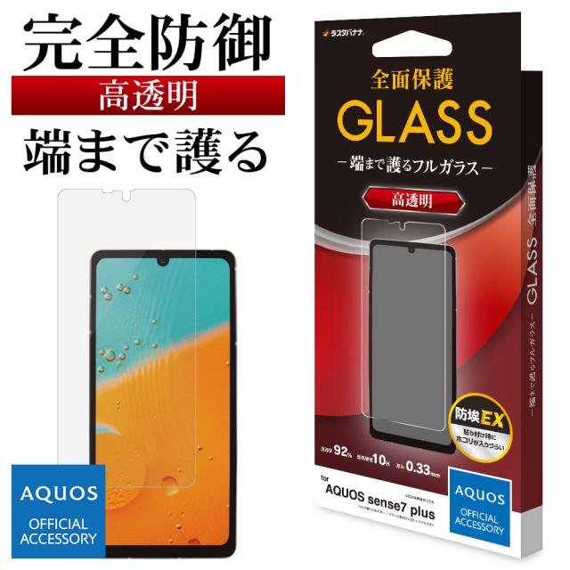 AQUOS sense7 plus ガラスフィルム 全面保護 高光沢 高透明 クリア ホコリ防止 0.33mm アクオス 保護フィルム GP3674AQOS7P ラスタバナナ