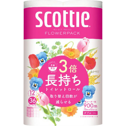 日本製紙クレシア スコッティ フラワーパック 3倍長持ち 12ロール ダブル