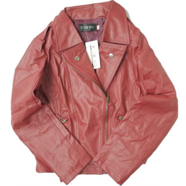 新品 no brand ノーブランド フェイクレザー ダブルライダースジャケット M レッド アウター