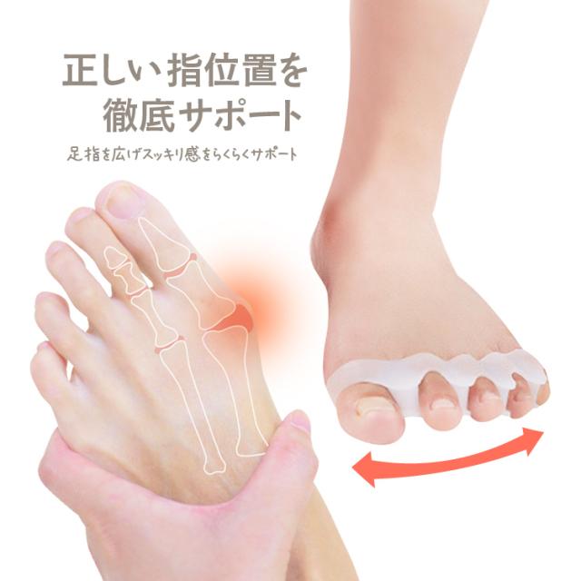 外反母趾、内反母趾、内反小趾など足指のつま先にかけての集まりを、足指を広げることによりスッキリ!