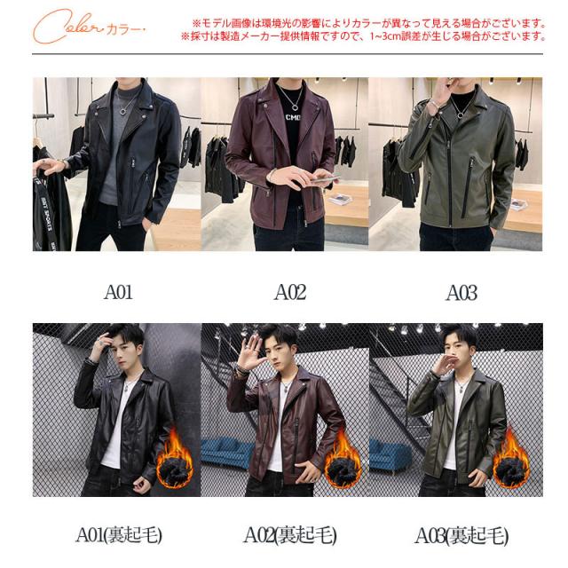 【水曜日まで!10%クーポン配布中】 ライダースジャケット メンズ レザージャケット 裏ボア 裏起毛 革ジャン ライダース ジャケット シンプル ブルゾン アウターバイク フェイクレザー 秋冬 防風