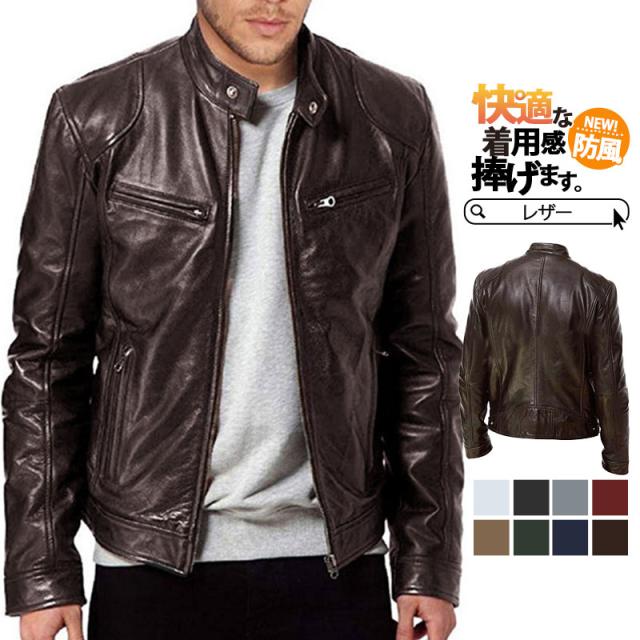 【水曜日まで!10%クーポン配布中】 ライダースジャケット メンズ レザージャケット 革ジャン ライダース ジャケット シンプル 軽い ブルゾン アウターバイク フェイクレザー 秋冬 防風 ミリタリー