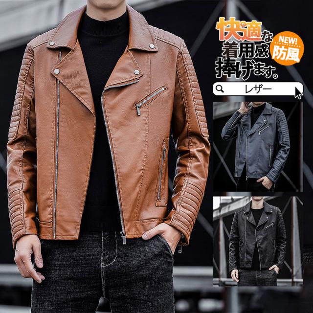 【水曜日まで!10%クーポン配布中】 ライダースジャケット メンズ レザージャケット 革ジャン ライダース ジャケット シンプル 軽い ブルゾン アウターバイク フェイクレザー 秋冬 防風 ミリタリー
