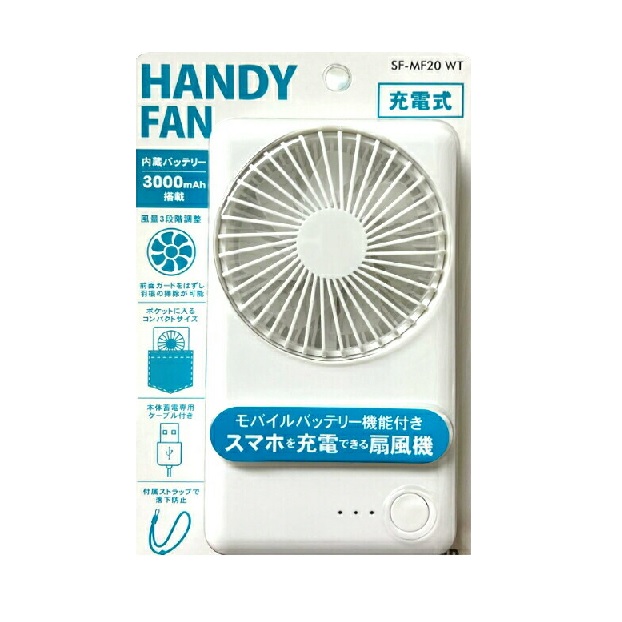 ハンディファン モバイルファン トップランド 内蔵バッテリー 3000mAh SF-MF20 WT スマホ充電できる 携帯扇風機 扇風機 静音 自動停止機能付き 本体約130gハンディーファン 充電式 電池内蔵