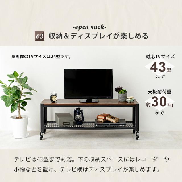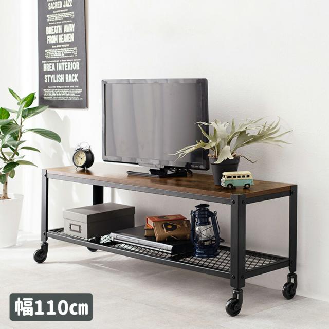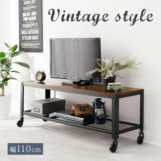 【送料無料】ヴィンテージ テレビ台 幅110cm キャスター付き ビンテージ調 オープンラック 23型テレビ対応 コンパクト 一人暮らし 男前 シンプル インテリア