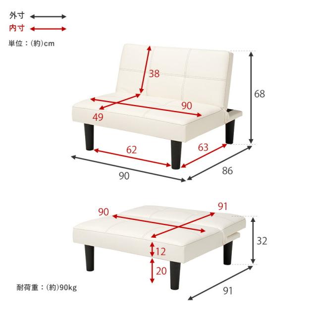 (約)幅90×奥行86〜91×高さ68〜32×座面高32cm