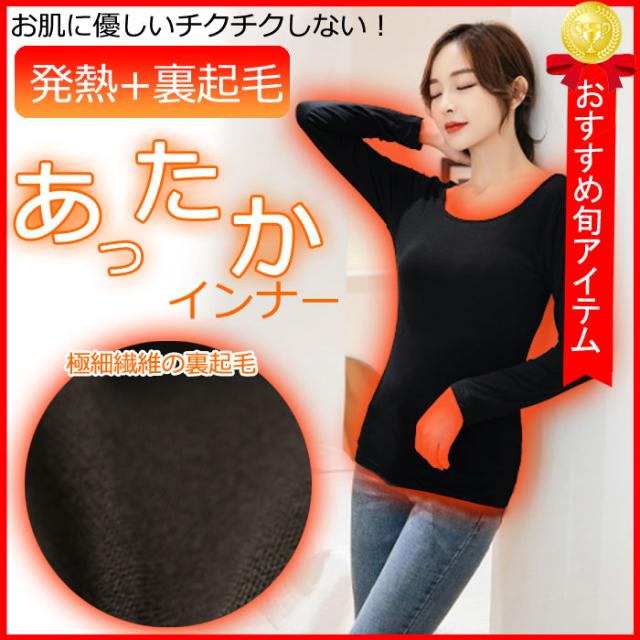 チクチクしない 裏起毛インナー 長袖 あったかインナー クルーネック 防寒 発熱 暖か ヒートインナー レディース ヒートテック 大きいサイズ ポイント消化