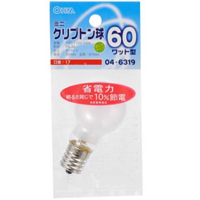 オーム電機 電球 ミニクリプトン球 ホワイト [E17 /電球色 /1個 /一般電球形] LB-PS3760K-W