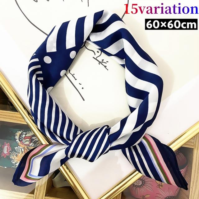 スカーフ 正方形 レディース バンダナ バッグスカーフ アレンジ多数 カラフル 鮮やか ストライプ ドット ハート リボン おし
