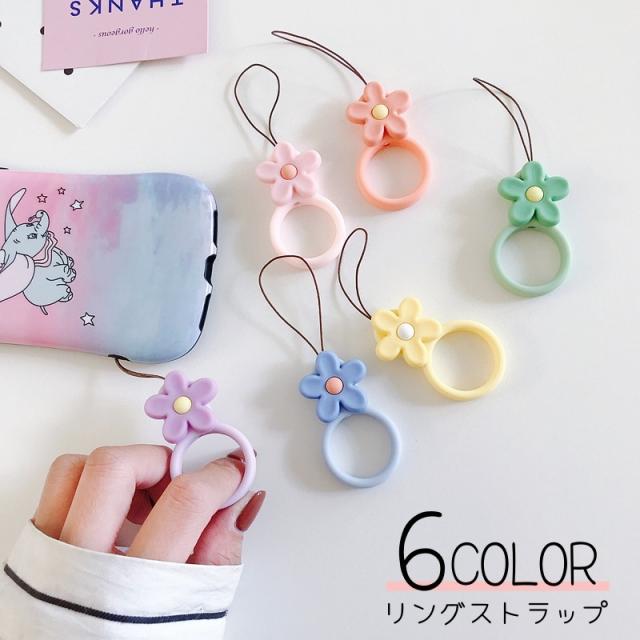 リングストラップ シリコン 携帯ストラップ スマホリング スマホアクセサリー 花 パステルカラー 落下防止 かわいい おしゃれ