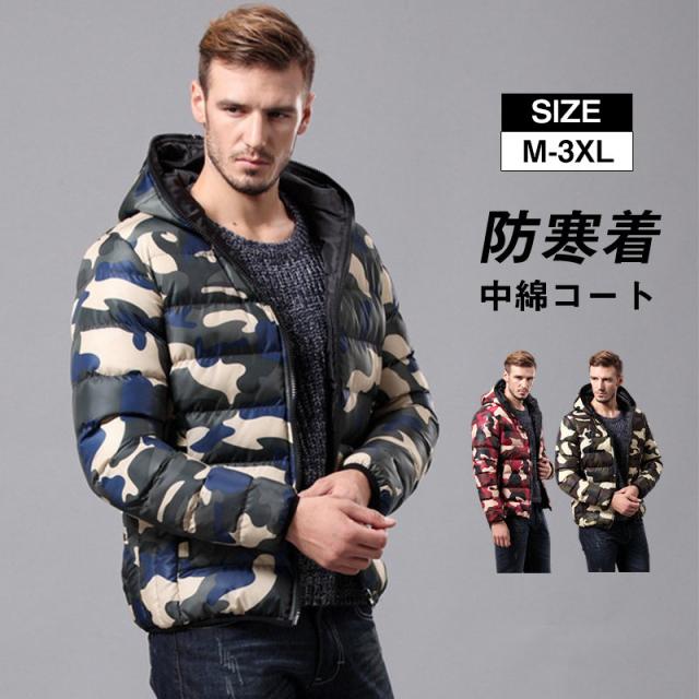 ダウンジャケット メンズ 中綿ジャケット フード付き ダウンコート 迷彩 中綿コート 冬物 防寒 大きいサイズ 暖かい おしゃれ