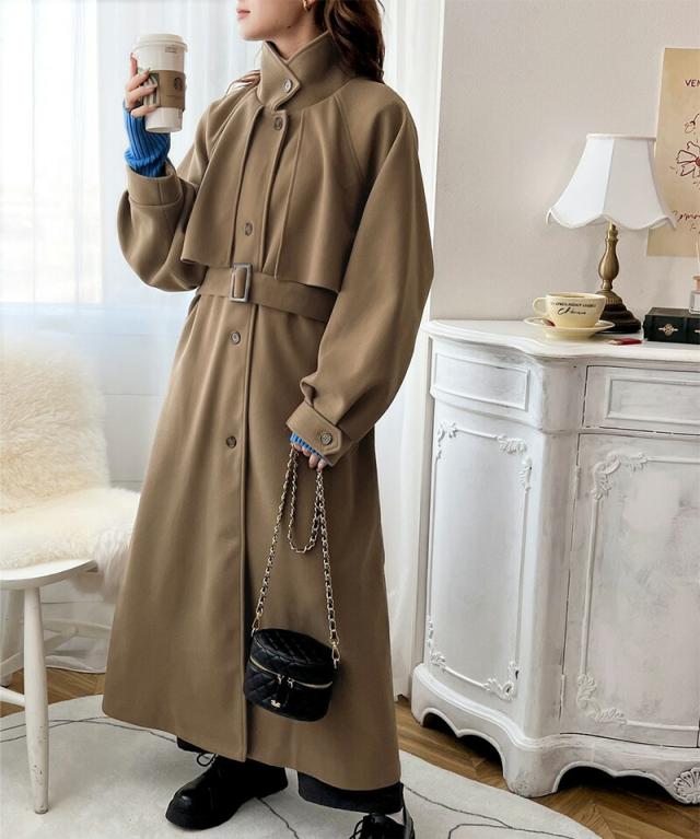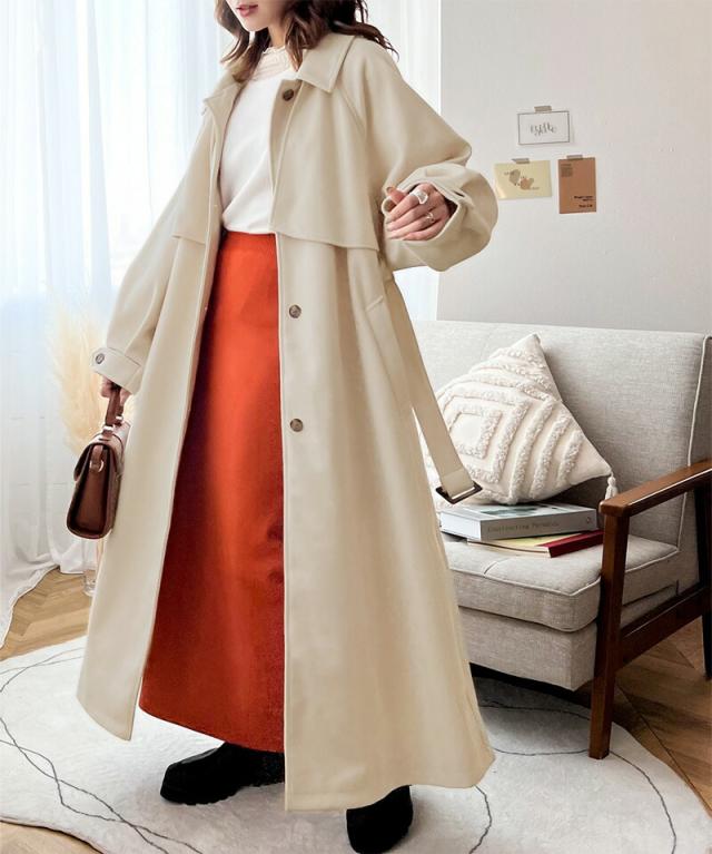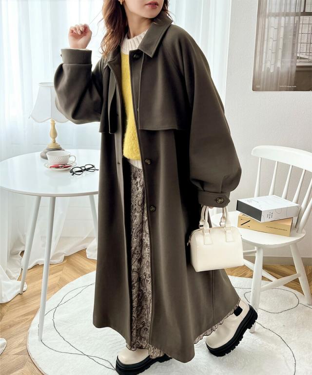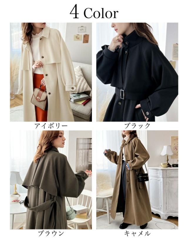 冬新作 クラシカルエルフ レディース 体型カバー コート ジャケット トレンチ 2way スタンドカラー ボリュームスリーブ ニット モッサ ウエストベルト ベルテッド きれいめ ロングコート オーバーサイズ ゆったり大きいサイズ ce0420123