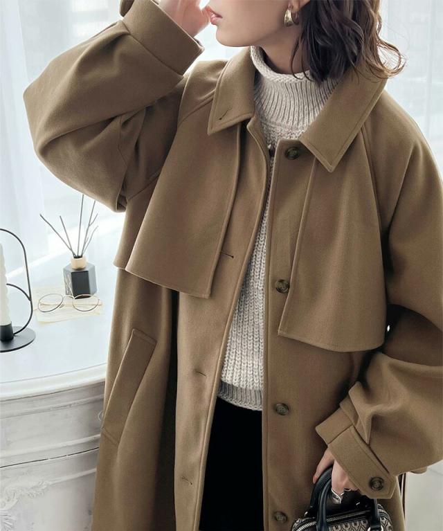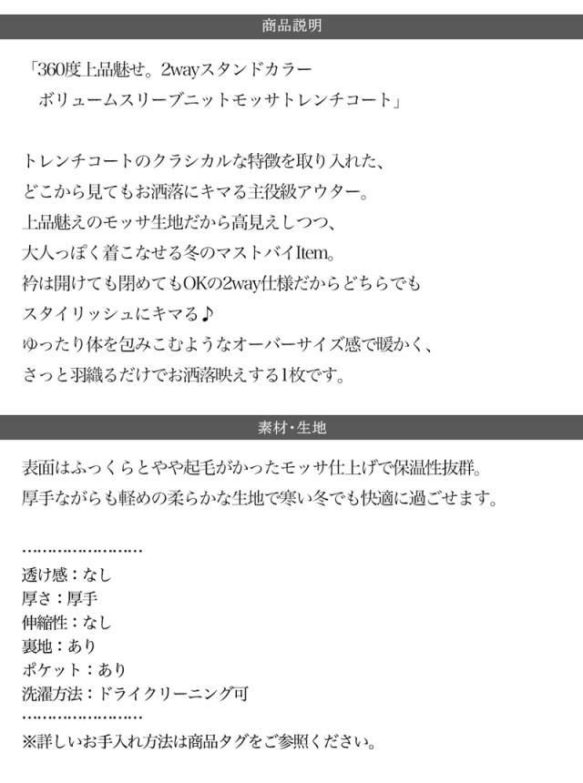 ★360度上品魅せ。2wayスタンドカラーボリュームスリーブニットモッサトレンチコート★